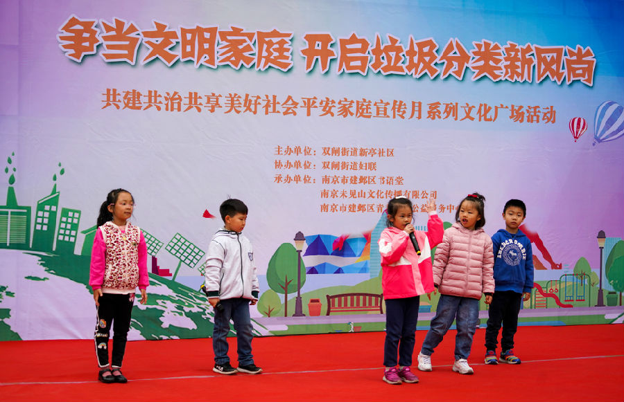 建邺区新亭社区开展“争当文明家庭开启垃圾分类新风尚”广场活动